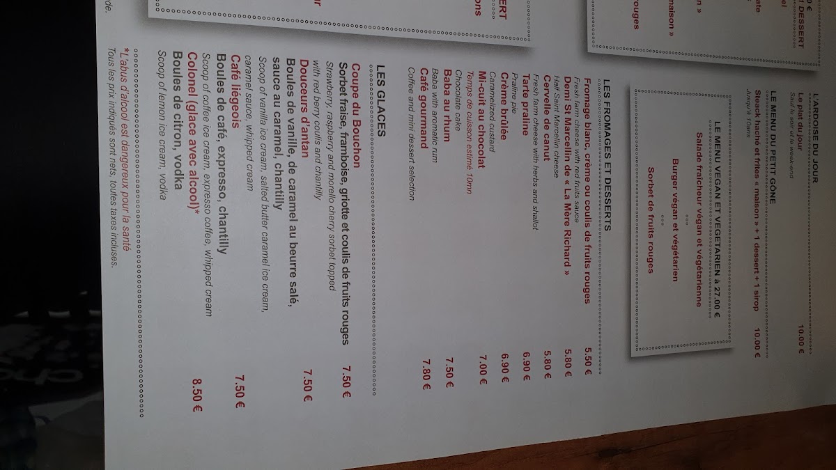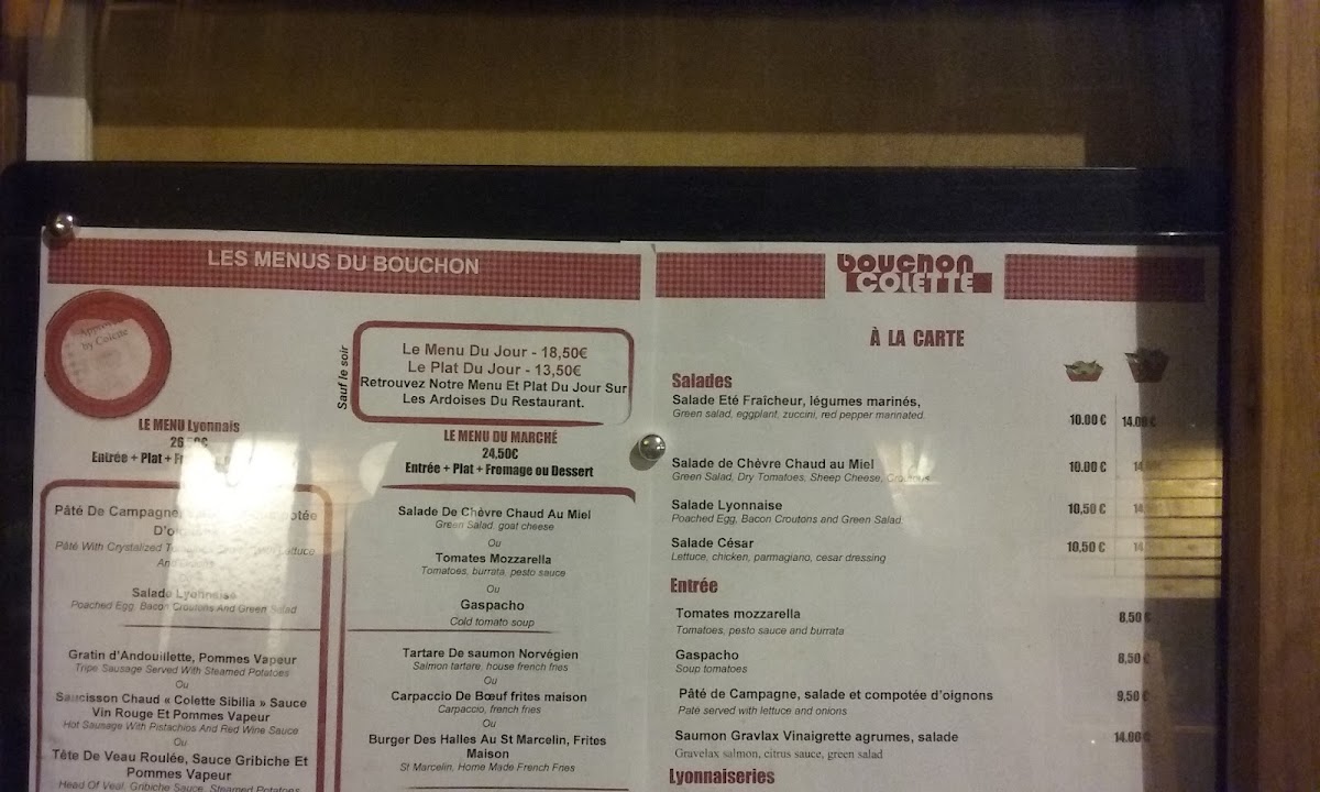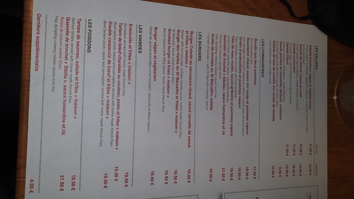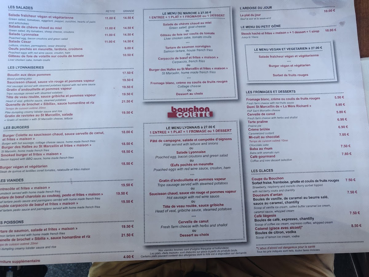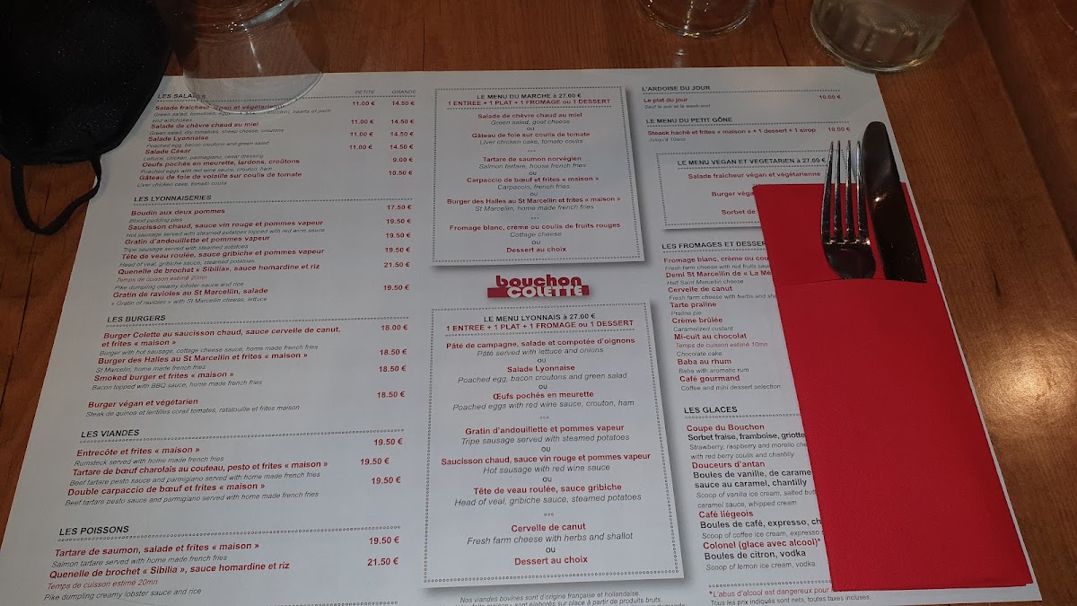 Introducing the menu at Le Bouchon Colette, nestled in the heart of Lyon, is a delightful experience. This charming "bouchon lyonnais" offers a menu brimming with local flavors. The standout dishes include the Lyon-style salad, renowned for its hearty authenticity, and the BBQ-burger, which receives mixed reviews on cooking precision; however, the staff’s attentiveness shines through.